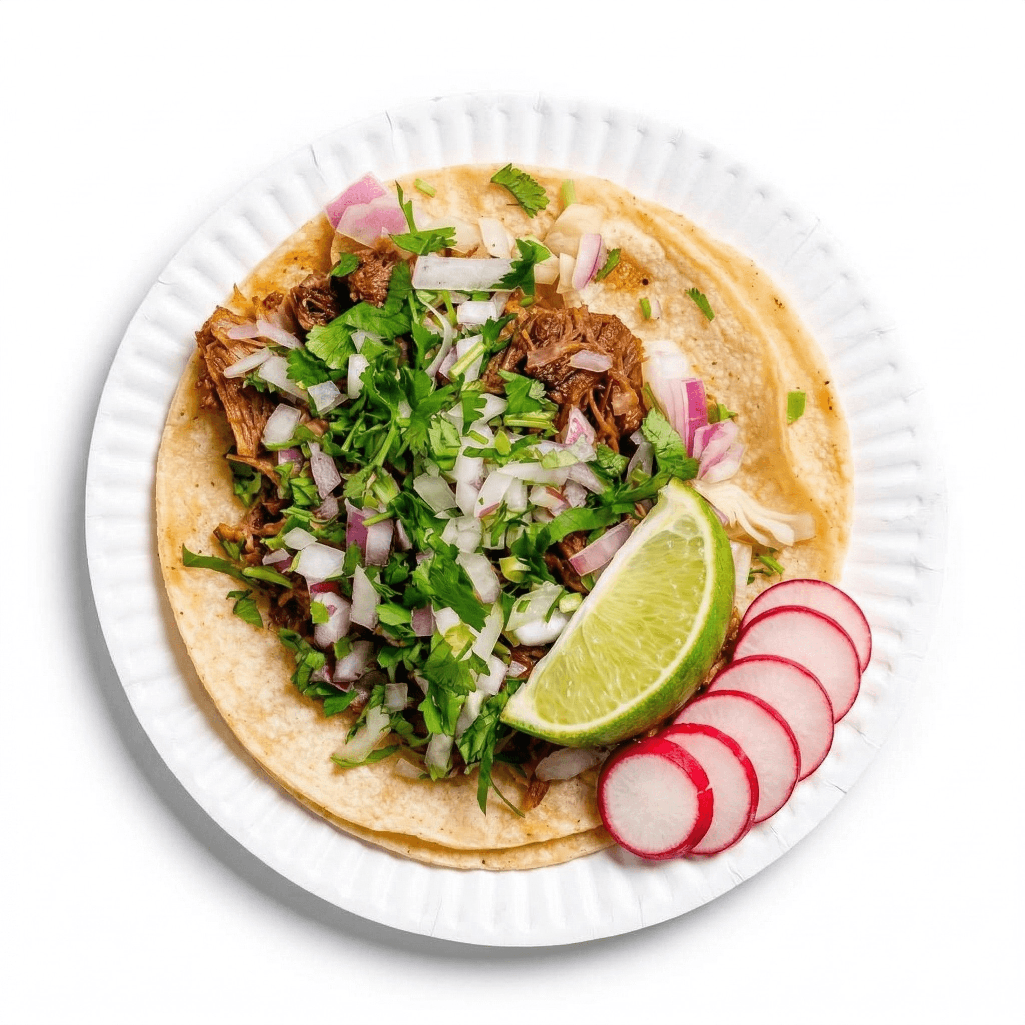 Homemade thick/deep fried corn tortilla, choice of meat, cilantro & onion